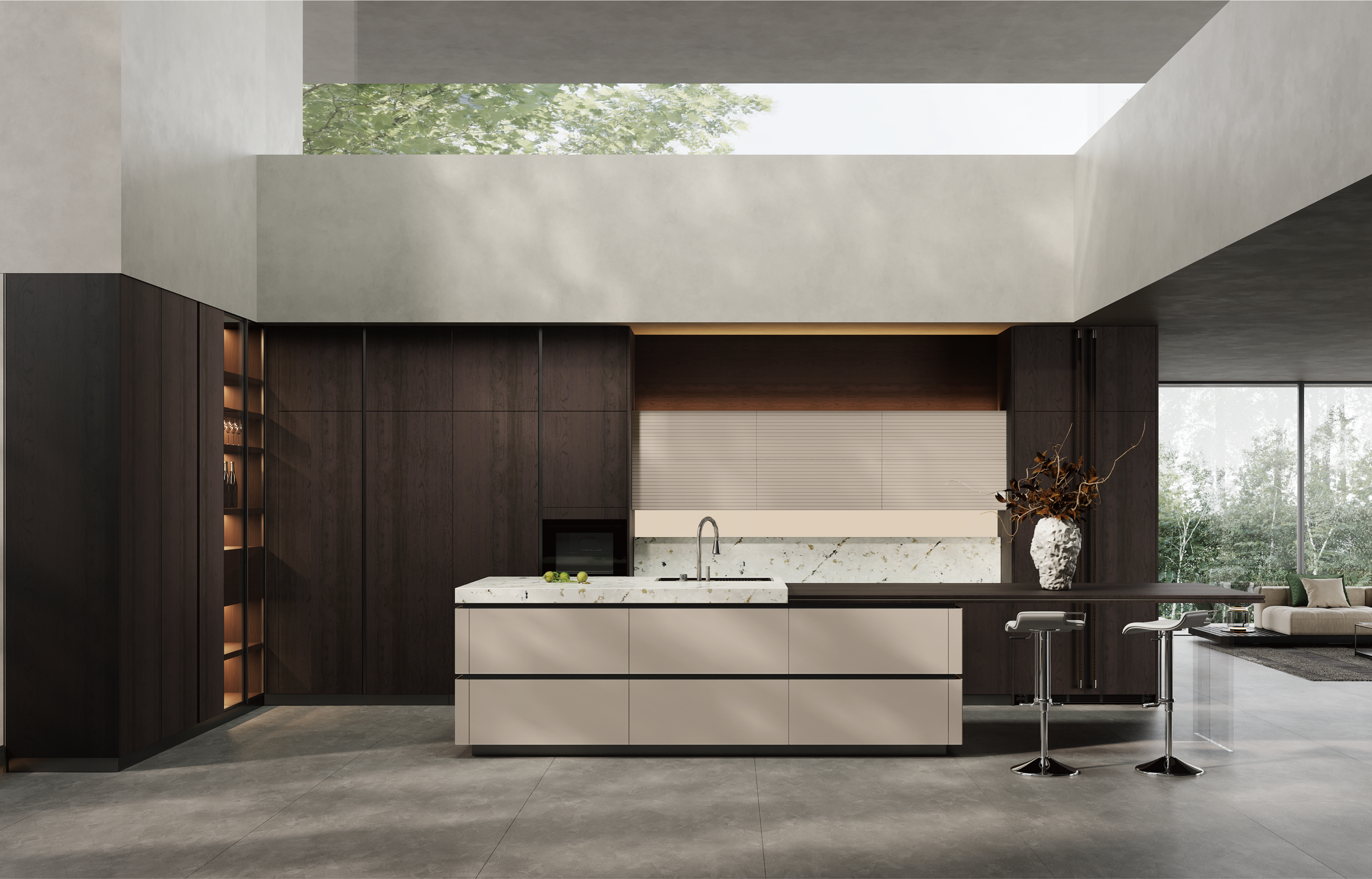 通过3377体育厨柜量体裁柜,定制出适合主厨下厨的烹饪区和洗涤区的舒适高度。